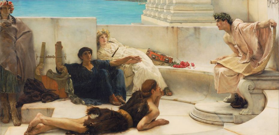 In ordine, nel testo: Lawrence Alma-Tadema, Una lettura da Omero (1885) e Il ritrovamento di Mosè (1904)