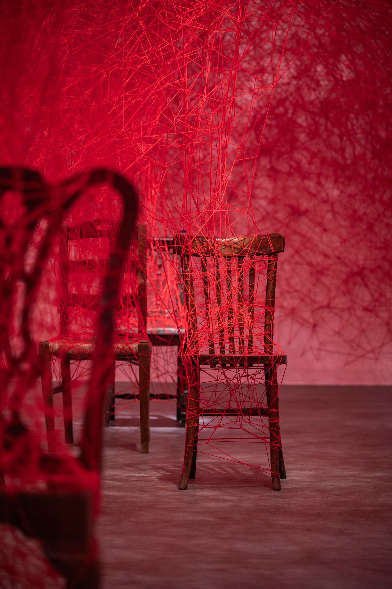 Gli oggetti che troviamo avvolti dalle trame tortuose di Chiharu Shiota vengono definiti nella loro essenza proprio dai fili che li intrappolano: la loro posizione nel mondo, il loro ruolo diventano così inscindibili dalla selva di fili tesi che sono visioni e relazioni, punti di vista.