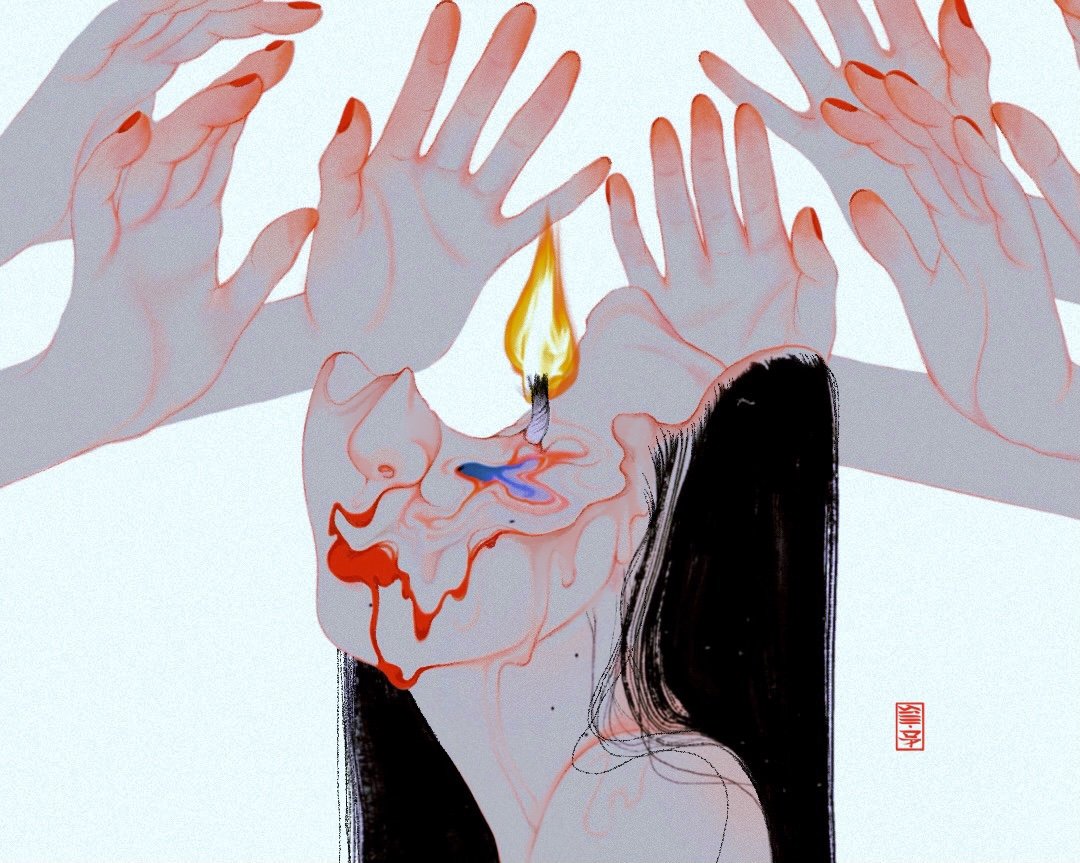 Lo stesso dolore, la stessa ambigua dolcezza insanguinata la ritroviamo nelle opere di una giovane artista sudcoreana, SillDA.